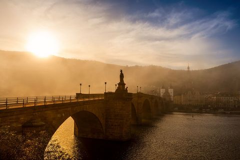 Kurfürst Karl Theodor ließ eine steinerne Brücke, die Alte Brücke, erbauen, nachdem das schlimmste Hochwasser in der Geschichte Heidelbergs die ehemals hölzerne Brücke weggespült hatte. Es gab davor insgesamt 8 Vorgängerbrücken, alle wurden vom wilden Neckar zerstört. Ihm zu Ehren wurde eine Statue aufgestellt, die ihn mit Blick auf das Schloss zeigt, außerdem die Pallas Athene, die Göttin der Wissenschaft und der Künste.